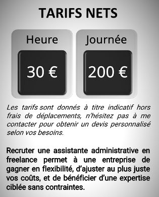 Les tarifs varient en fonction de la mission et du forfait choisi. Je vous propose un tarif adapté à votre besoin.